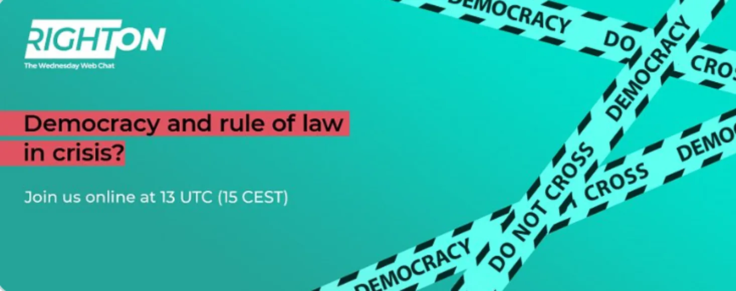 ‘Right On’ web chat will address ways to tackle the global health crisis without undermining democratic practices and will reflect on the consequence of COVID-19 on the future of democracy and the rule of law.