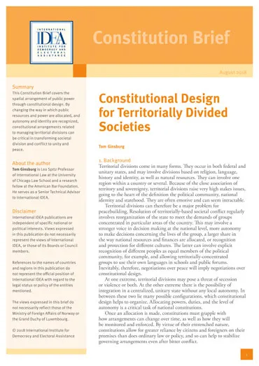 Send feedbackConstitutional Design for Territorially Divided Societies