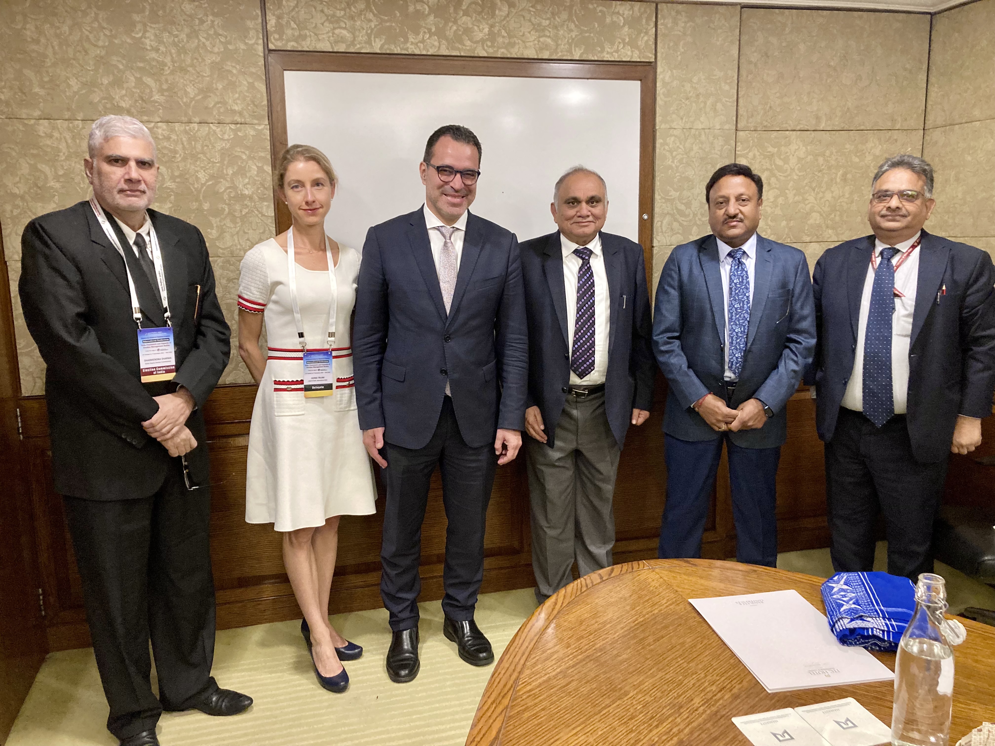 Kevin Casas-Zamora, International IDEA Secretary-General, and Adina Trunk, International IDEA Chief of Staff, meet Chief Election Commissioner Rajiv Kumar, Election Commissioner Anup Chandra Pandey and the Election Commission of India leadership team.