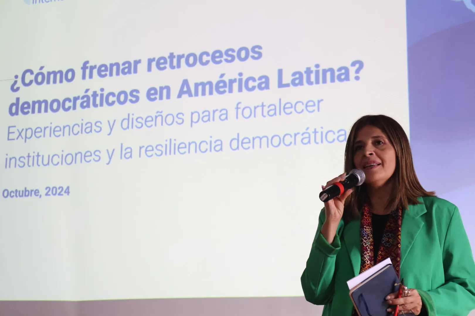 Para Marcela Rios Tobar, Directora Regional de IDEA Internacional, este diálogo no es solo un diagnóstico sobre los múltiples desafíos que enfrenta la democracia, también aborda soluciones. El informe Estado de la Democracia en el Mundo 2024 ha sido la inspiración para el debate.