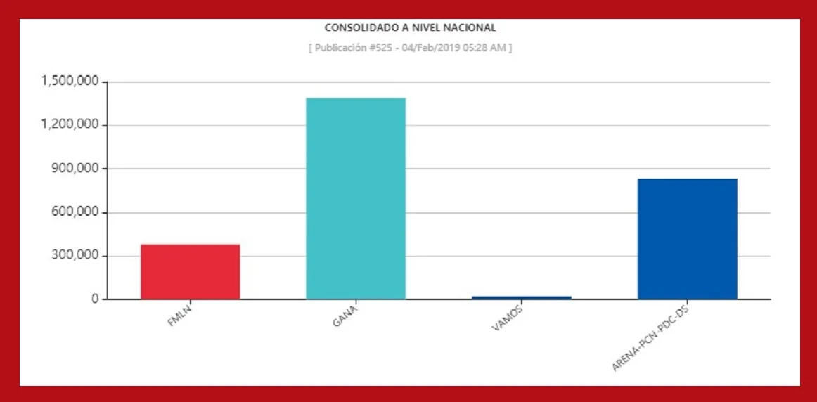 El domingo 3 de febrero se celebraron elecciones presidenciales en El Salvador. La fórmula victoriosa—según datos preliminares—fue la de Nayib Bukele Ortez y Félix Ulloa Garay, de la Gran Alianza por la Unidad Nacional (Gana), con 53 por ciento de los votos. Vencieron de manera contundente a Carlos Calleja (31.78 por ciento), de la Alianza por un Nuevo País (Arena-PCN-PDC-DS); a Hugo Martínez (14.42 por ciento), del Frente Farabundo Martí para la Liberación Nacional (FMLN) y a Josúe Alvarado (0.78 por ciento), del recién creado partido Vamos. Bukele se impuso en los catorce departamentos del país, por márgenes de entre once y veinte puntos porcentuales.