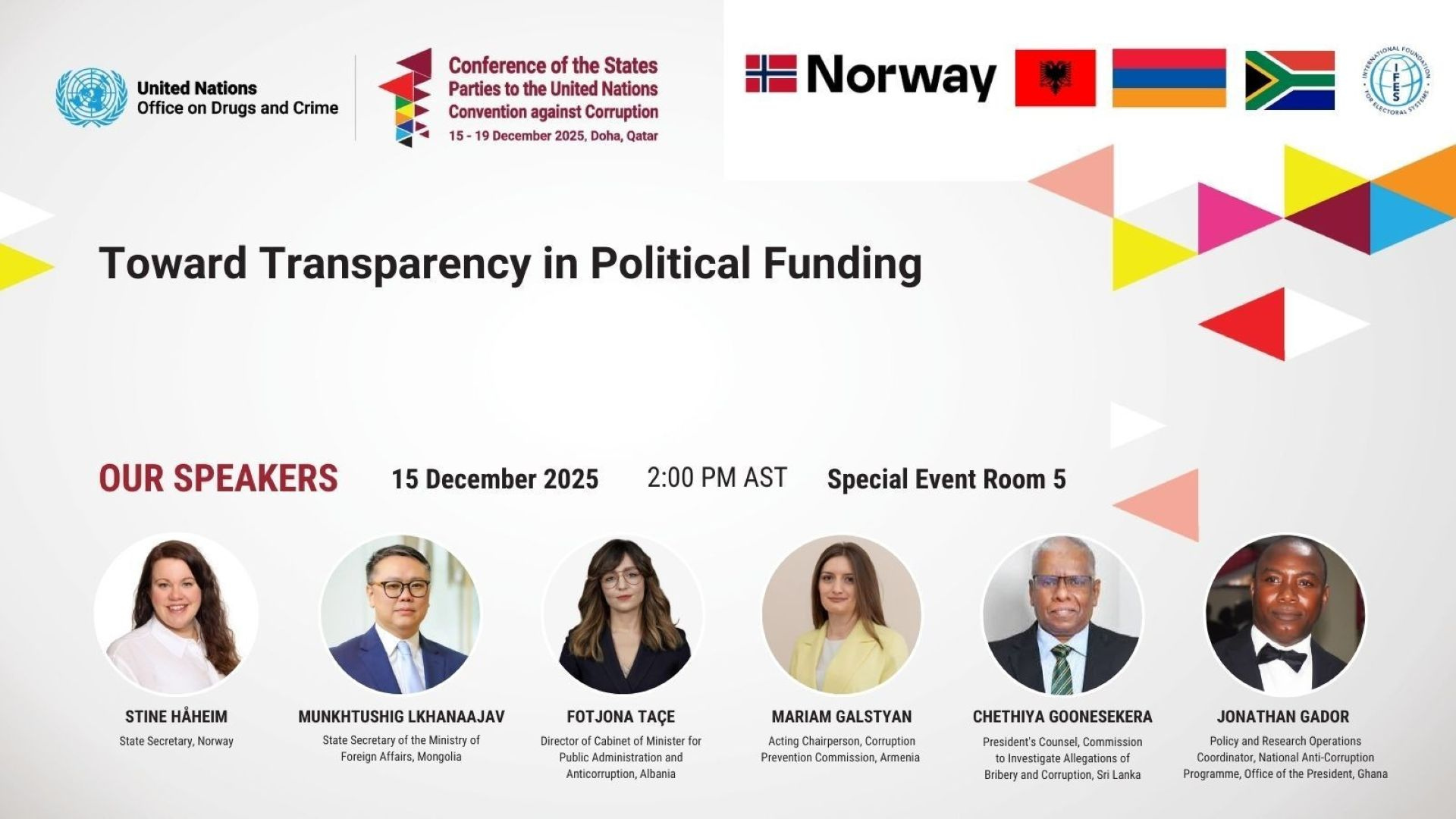 We look forward to engaging with anti-corruption experts, partners, and practitioners in Doha as we work together to advance political finance transparency and strengthen democratic resilience worldwide.