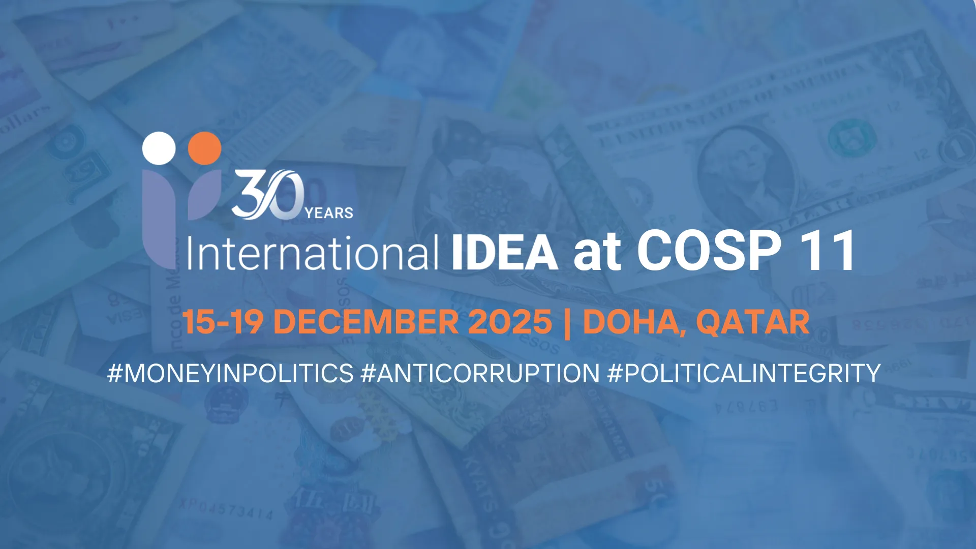 International IDEA will participate in COSP11 with a strong focus on political finance transparency, a critical yet often overlooked dimension of the global anti-corruption agenda. Through research, policy assistance, and global advocacy, International IDEA supports countries in strengthening regulations on political donations, campaign spending, reporting and disclosure, and oversight - key pillars for preventing undue influence and safeguarding democratic integrity.