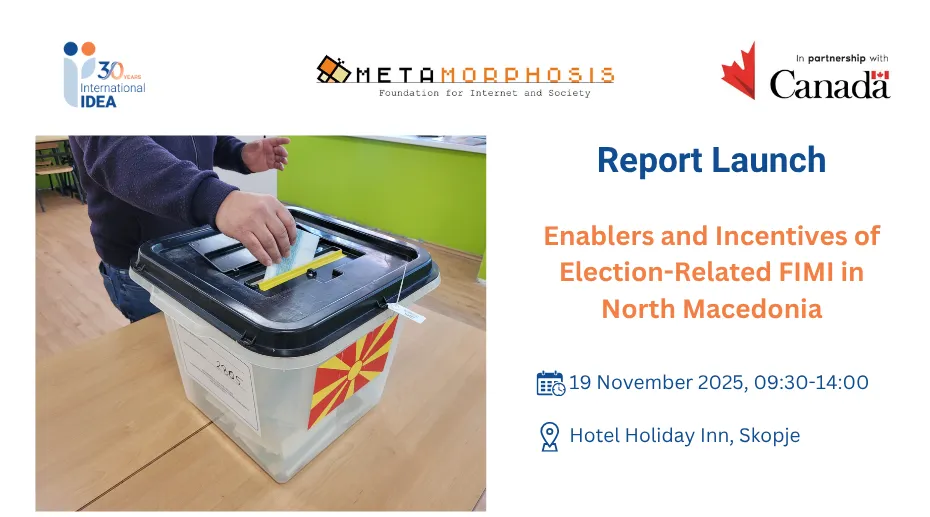 The report Enablers and Incentives of Election-Related Foreign Information Manipulation and Interference in North Macedonia provides a comprehensive analysis of the enablers and incentives driving foreign information manipulation and interference (FIMI) in North Macedonia. The report, drafted by the Metamorphosis Foundation, in collaboration with International IDEA and supported by Global Affairs Canada, applies the global methodology developed by International IDEA, adapted to North Macedonia's specific political, social, and media landscape.