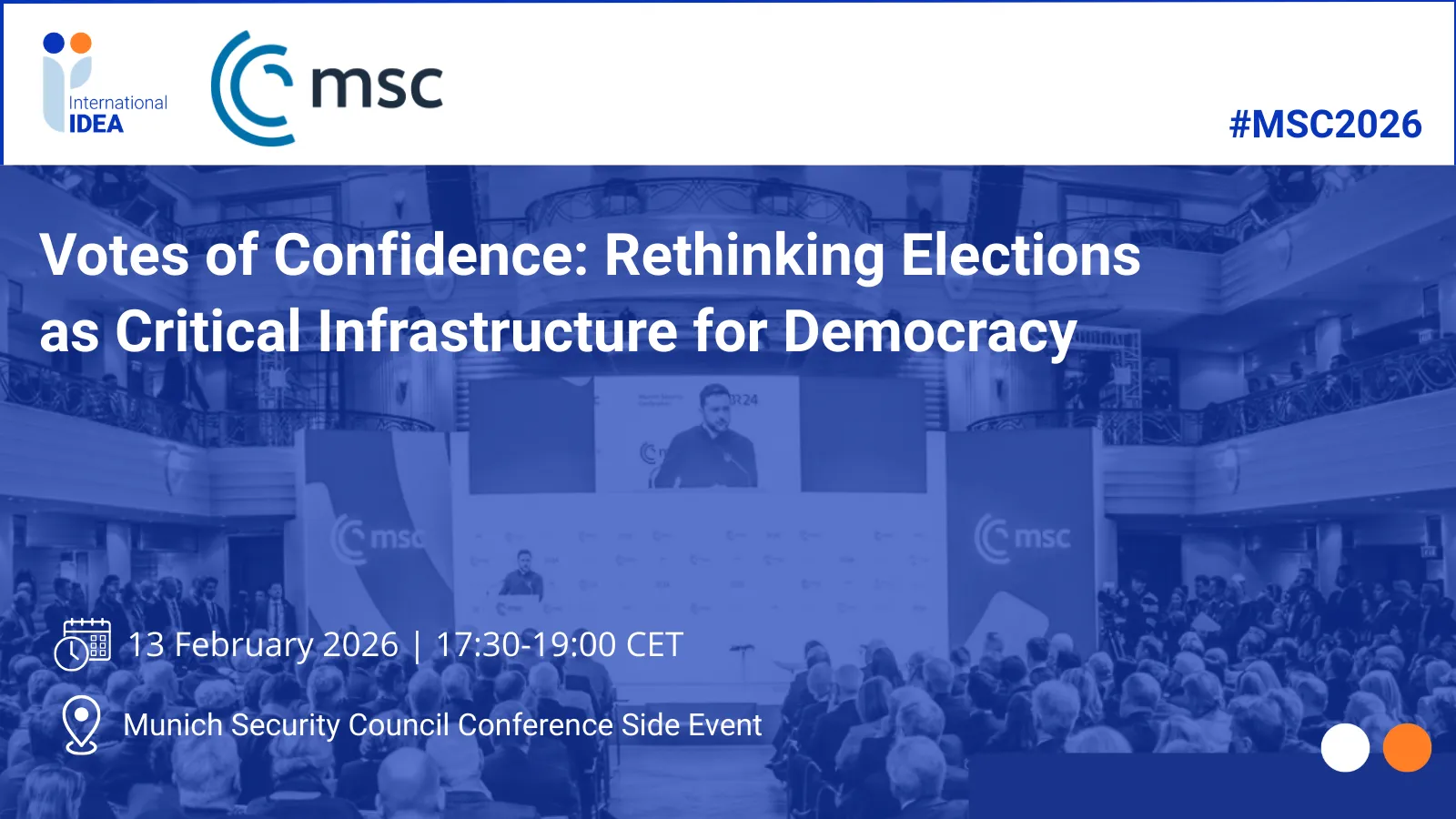 On 13 February, International IDEA will host an official side event at the Munich Security Conference on the intersections between democracy and security, with a focus on elections. As democratic backsliding becomes a growing security concern globally, the event positions elections as a core element of democratic resilience.