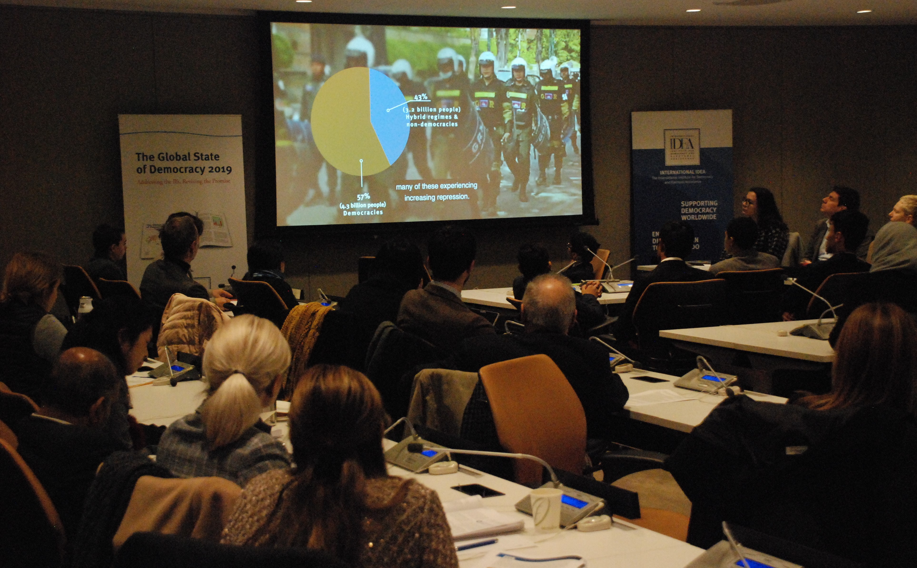 The New York launch of "The Global State of Democracy Report 2019" on 12 December 2019 sought to highlight its key findings and discuss its relevance with policymakers from the United Nations system, to identify common approaches in order to address the global challenges to democracy, and to discuss effective ways to support country efforts at building democracy around the world.