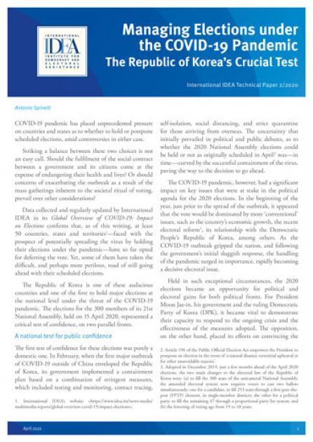 - Technical paper 2: Managing Elections under Covid-19 in South Korea (18 April 2020)