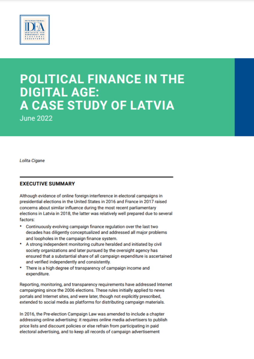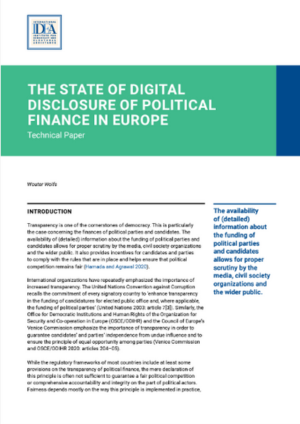 The case study series under the project ´Political Finance in the Digital Age´ collects empirical information about the ways countries adapt to and cope with political finance challenges associated with digitalization. Through the project, members of political finance oversight agencies and civil society organizations, political party officials and legislators can learn about good practices and lessons learned from various countries that can help them devise and implement political reforms to protect the integrity of political processes and institutions against existing and emerging digital risks.