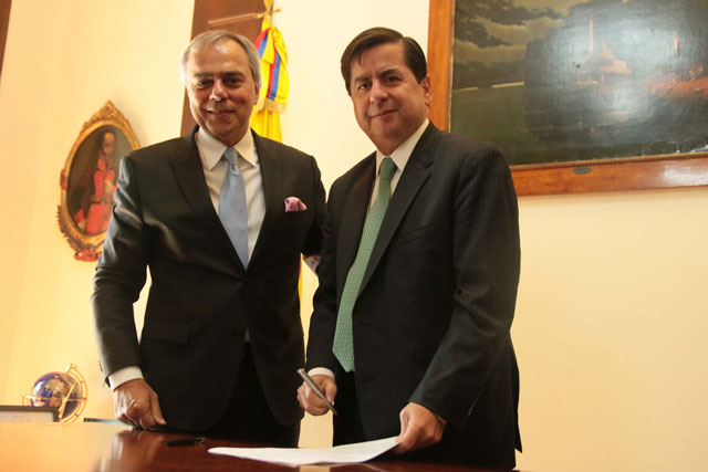 Daniel Zovatto, Regional Director for Latin America and the Caribbean of International IDEA and Juan Fernando Cristo, Minister of Interior of Colombia