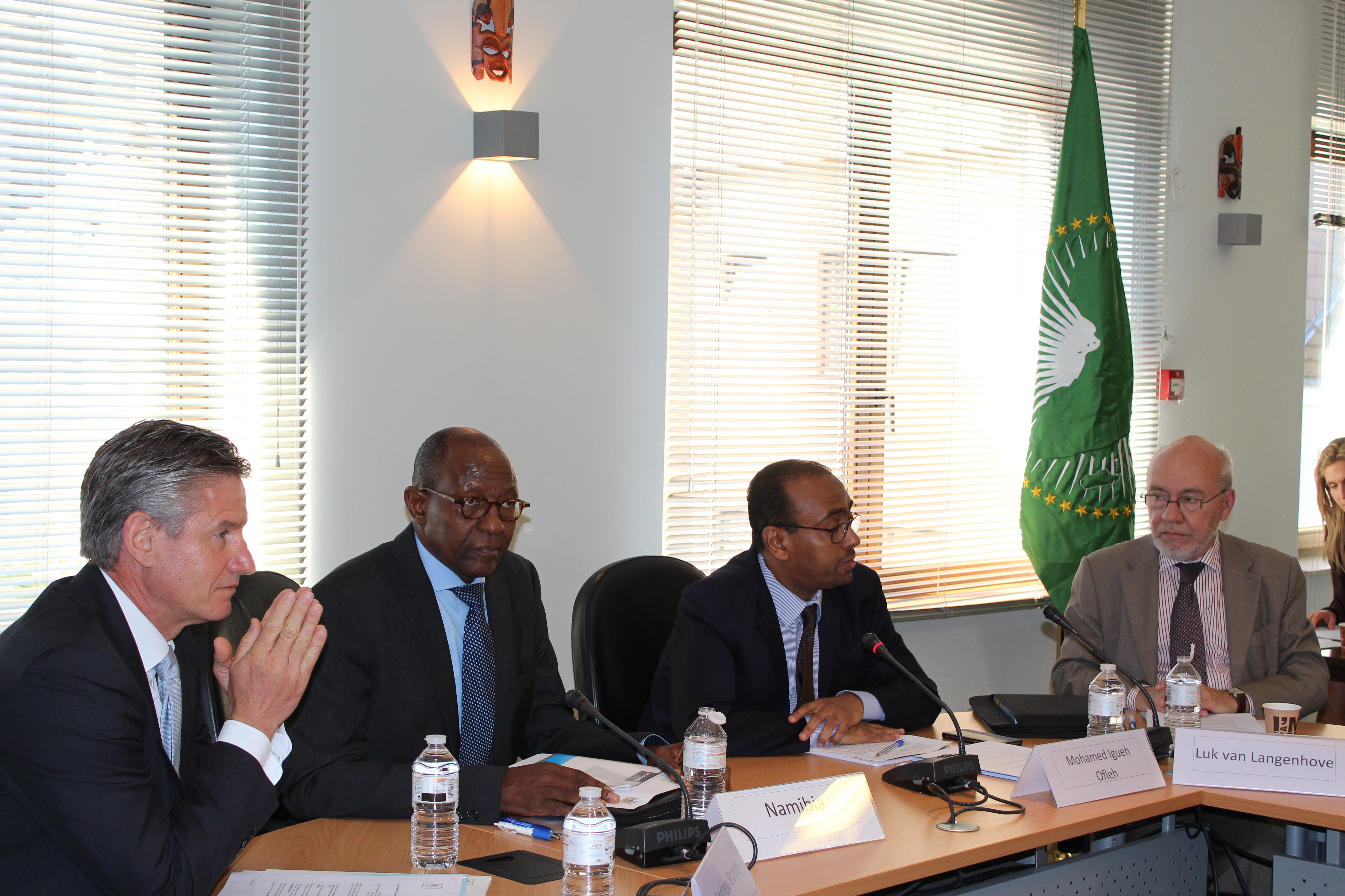 In his opening remarks, Ambassador Mbuende acknowledged the presence of a representative of Panama, a new Member State of International IDEA. He framed the objectives of the meeting and provided a reflection on the need for democracy to deliver results in terms of inclusive and sustainable economic development. The invited guest speaker was Professor Luk Van Langenhove, who is the Academic Director at the Institute for European Studies at the Vrije Universiteit Brussel. He provided some insights on “The future of the liberal world order and the fate of Europe”.