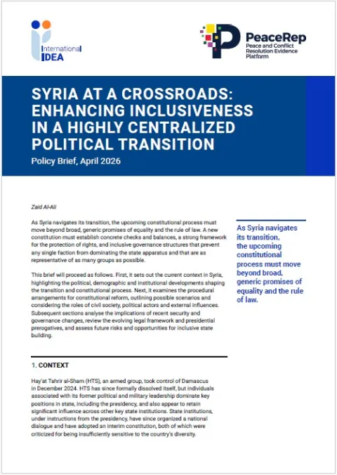 In December 2025, International IDEA and the University of Edinburgh, as part of the Peace and Conflict Resolution Evidence Platform (PeaceREP) organised the Twelfth Edinburgh Dialogue on Constitution Building in Fragile Settings on ‘the changing nature of mediation when negotiating political settlements in fragile settings’, bringing together key actors from the fields of peace mediation and constitution building support.