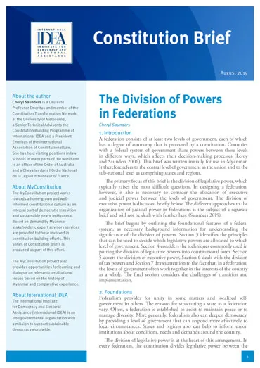 Countries with a federal system of government share powers between these levels in different ways, which affects their decision-making processes. The primary focus of this Constitution Brief is the division of legislative power, which typically raises the most difficult questions.