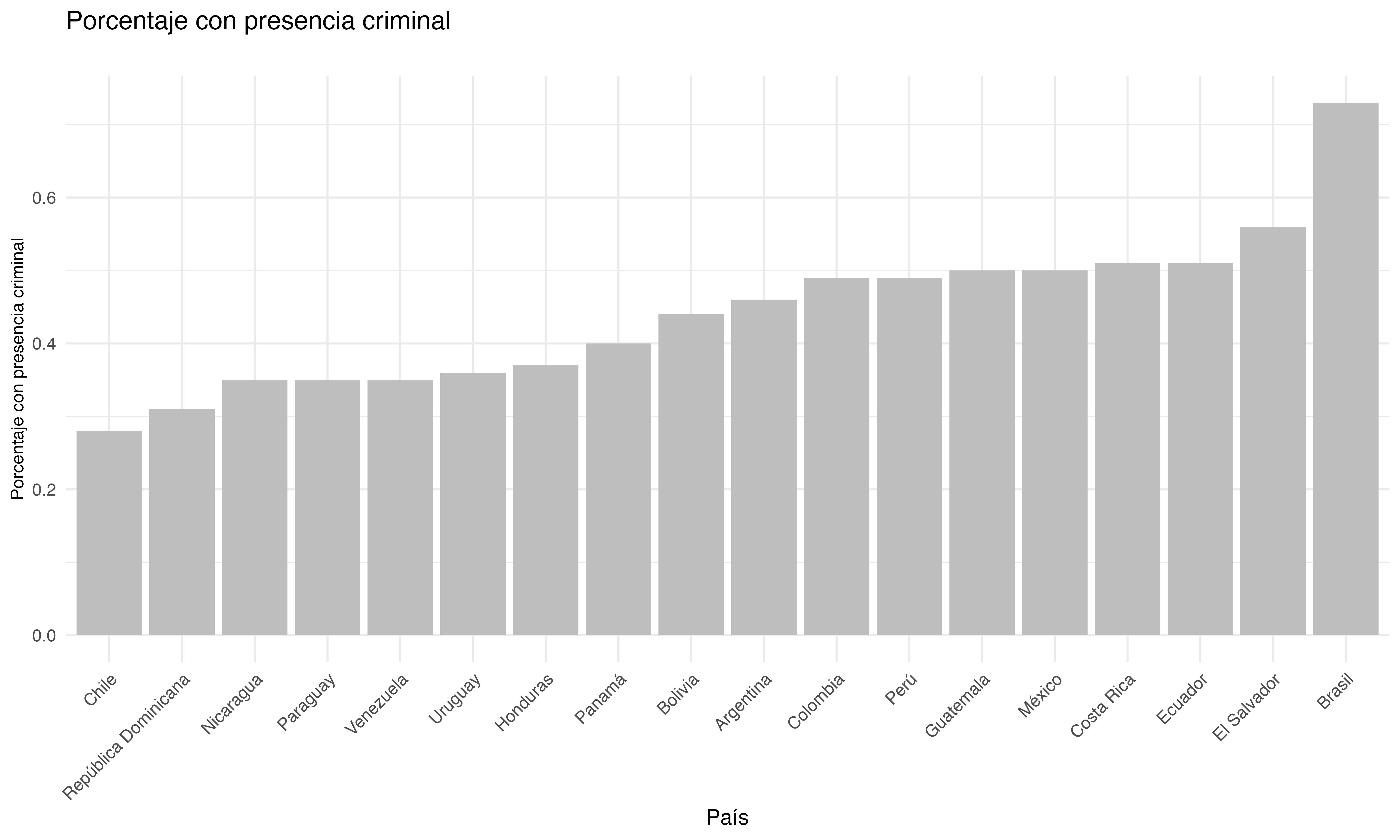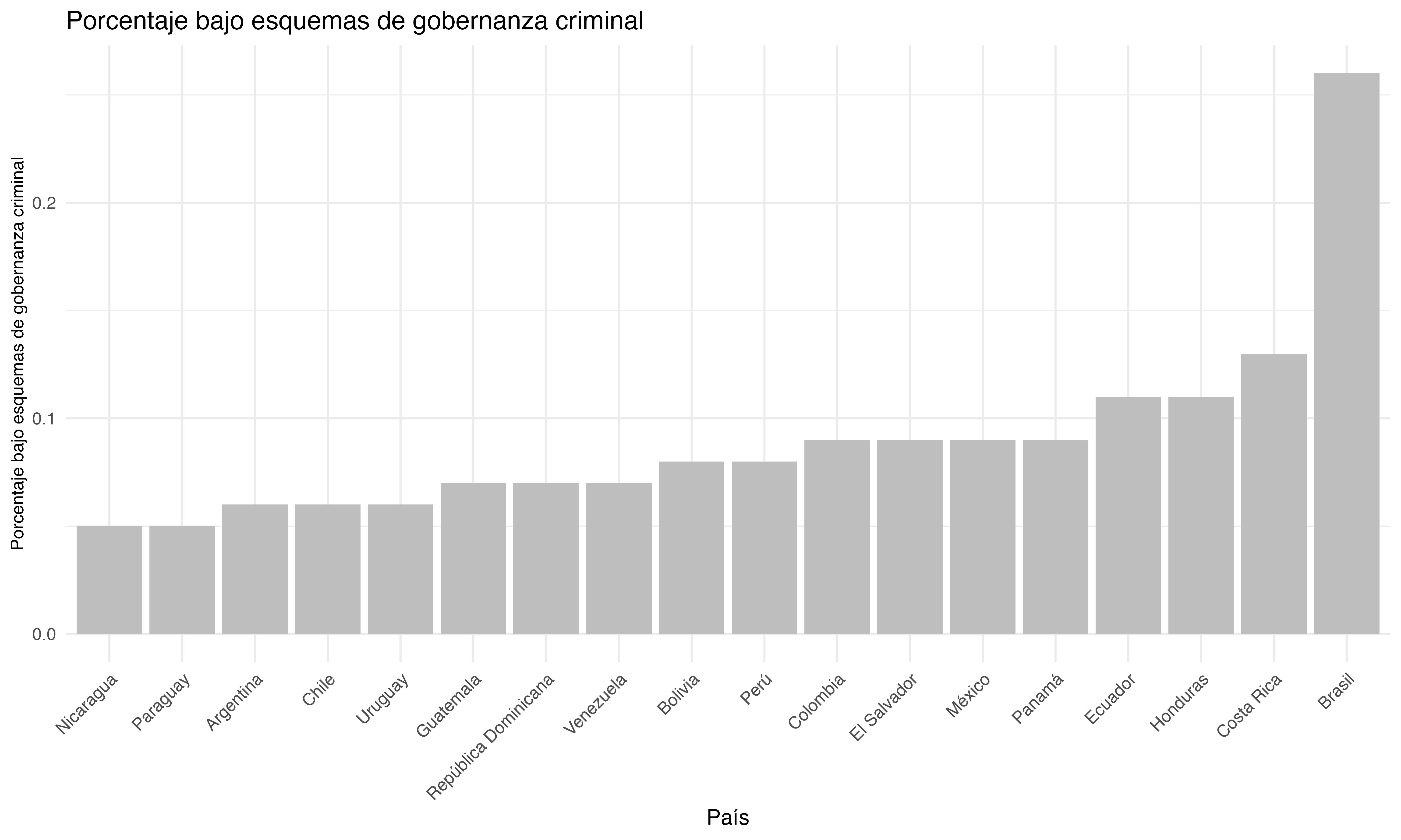 Esta dinámica se observa a lo largo de diversos países de la región (Brasil, Colombia, Ecuador, México, Paraguay y Perú). El fenómeno ha comenzado a influir incluso en países con instituciones democráticas más robustas, como Costa Rica, Chile y Uruguay, donde en algunas circunscripciones municipales se han destapado esquemas de colusión entre autoridades electas y el crimen organizado (OEA, 2024b; CIPER Chile, 2021). Un corolario muy problemático de esta dinámica tiene que ver con manipulación de políticas públicas en una serie de materias, pero en particular en relación con medidas de seguridad, orden público y administración de justicia. En este tipo de contexto, los grupos de crimen organizado y otros actores armados criminalizados, imponen los términos de la gestión pública en la medida en que controlan a las autoridades electas. Esto redunda en decisiones lesivas, tanto en términos de la naturaleza de las políticas y su ejecución, como en cuanto a la utilización del presupuesto de las autoridades en temas de seguridad pública.