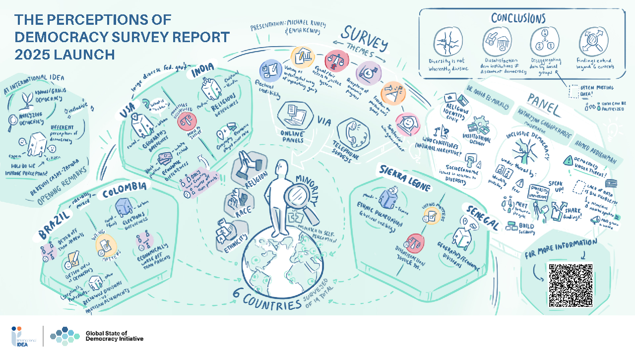 This report is the latest in the Perceptions of Democracy Survey (PODS) series and, like its predecessors, is based on a unique poll of popular attitudes towards democracy and democratic institutions in a diverse set of countries from around the world. Previous reports have found that self-identified members of majority and minority groups perceive themselves as receiving differential, and at times unfair or unjust, treatment in even the highest-performing democracies (International IDEA 2024b). While those reports established that a popular demand for democracy remains strong across borders and between social groups, democracy as it currently exists does not always work for all.