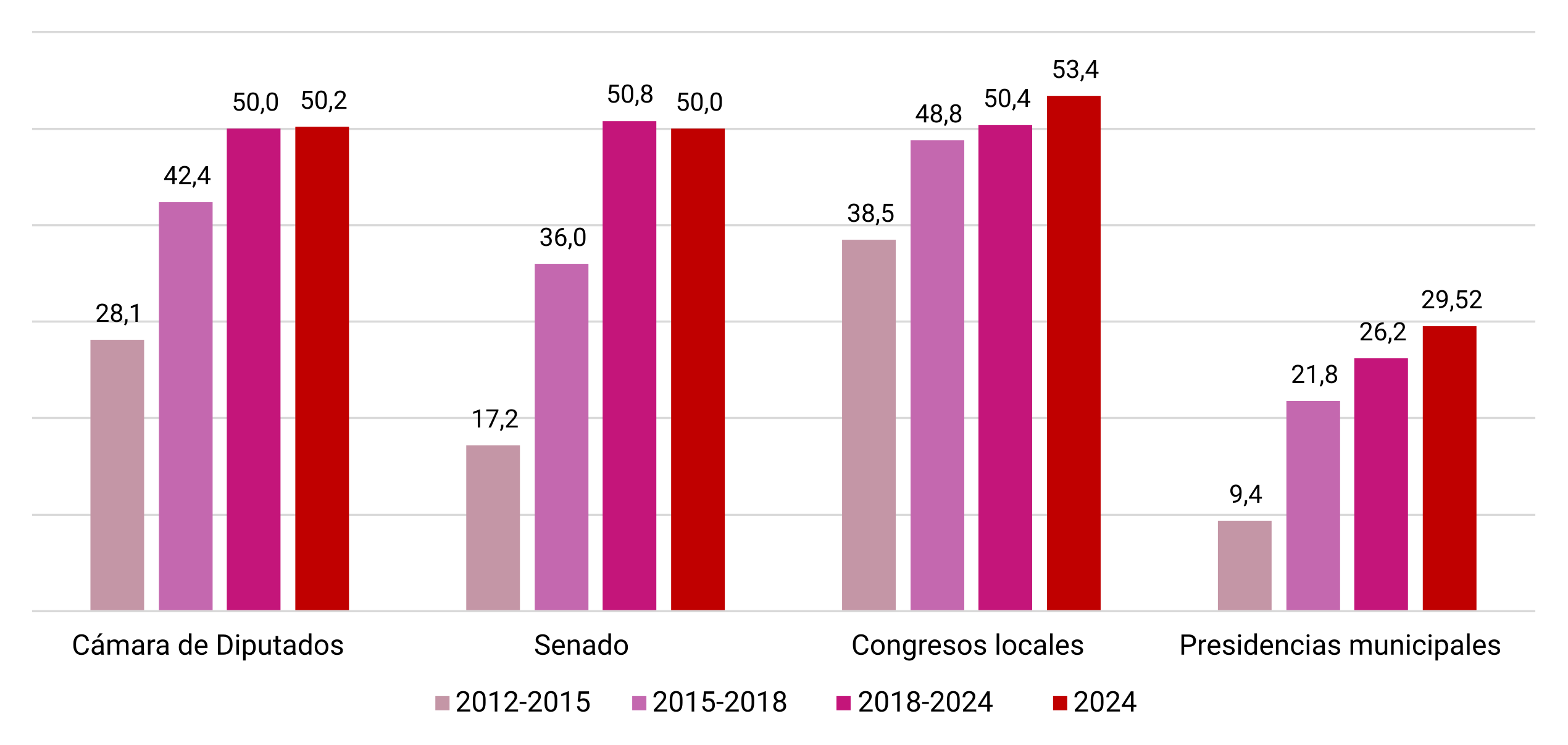 Observatorio de Participación Política de las Mujeres en México, Participación política en cifras, [s. f.], <https://observatorio.inmujeres.gob.mx/mvc/view/public/index.html?ms=Mzk=>, fecha de consulta: 24 de julio de 2024.