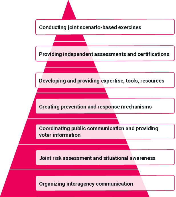 Examples of interagency cooperation include collaboration between the European Cooperation Network on Elections and the NIS Cooperation Group. Other initiatives to strengthen the resilience of electoral processes against cyberthreats include EU-CyCLONe (European Cyber Crisis Liaison Organisation Network), a cooperation network for the national authorities of member states responsible for cyber crisis management. Additional expertise across the EU could also help to tackle cyberthreats during elections through bodies such as the European Data Protection Board (EDPB), the European Union Agency for Cybersecurity, the Emergency Response Coordination Centre, Europol and networks of audiovisual regulators, among others (European Cooperation Network on Elections n.d.).