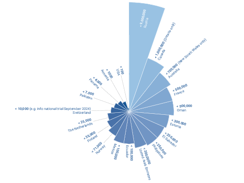 | 5 | Switzerland | <10,000 (e.g. info national trial September 2024, Federal Chancellery of Switzerland 2024) |