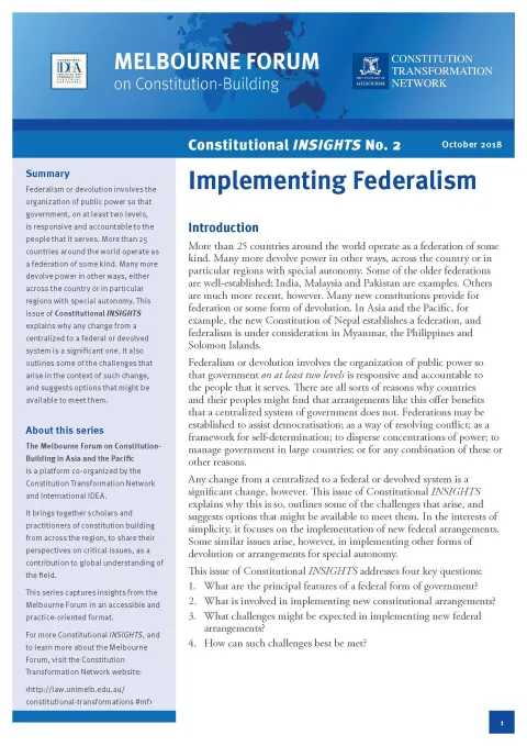 This issue of Constitutional INSIGHTS explains why any change from a centralized to a federal or devolved system is a significant one. It also outlines some of the challenges that arise in the context of such change, and suggests options that might be available to meet them.