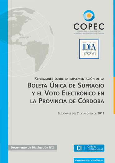 En el marco del último proceso electoral provincial cordobés, celebrado el pasado 7 de agosto de 2011, el Consejo para la Planificación Estratégica de la Provincia de Córdoba (COPEC) elaboró un informe basado en la Jornada “Reflexiones sobre las experiencias de la Boleta Única de Sufragio y el Voto Electrónico en la Provincia de Córdoba”, realizada el 21 de septiembre de 2011 en la sede del COPEC.