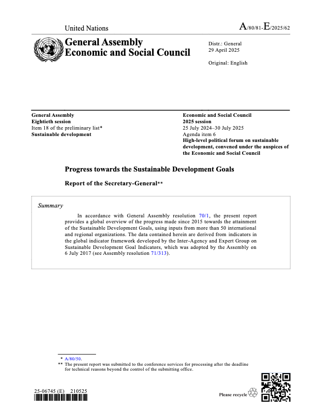 Progress towards the Sustainable Development Goals: Report of the Secretary-General