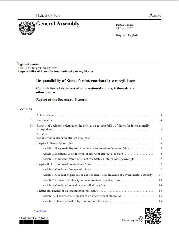Responsibility of States for internationally wrongful acts: Compilation of decisions of international courts, tribunals and other bodies - Report of the Secretary-General